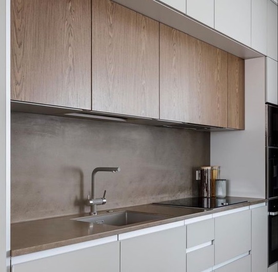 - Đối với chủ nhà mệnh mộc hoặc yêu thích các Hoa vân của gỗ bạn có thể lựa chọn gỗ công nghiệp ốp bếp.